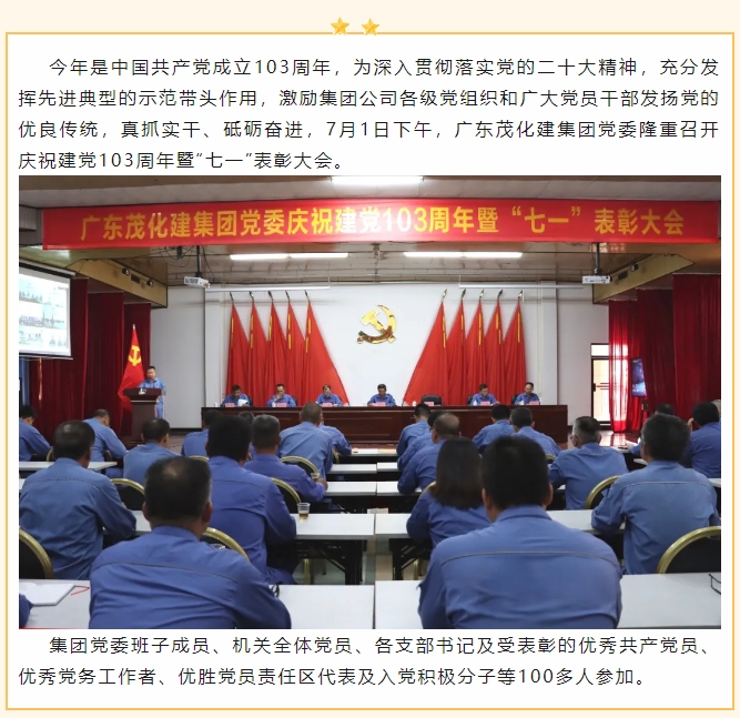 廣東茂化建集團(tuán)黨委召開慶祝中國(guó)共產(chǎn)黨成立103周年暨“七一”表彰大會(huì)