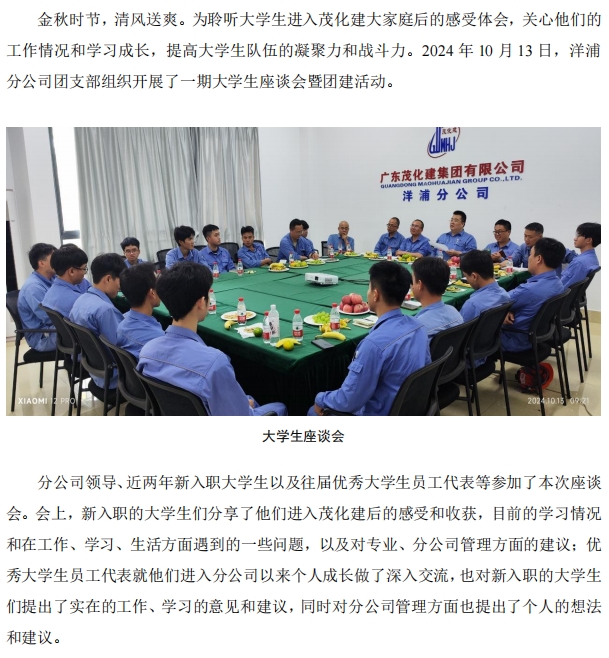 洋浦分公司團(tuán)支部組織大學(xué)生座談會暨團(tuán)建活動