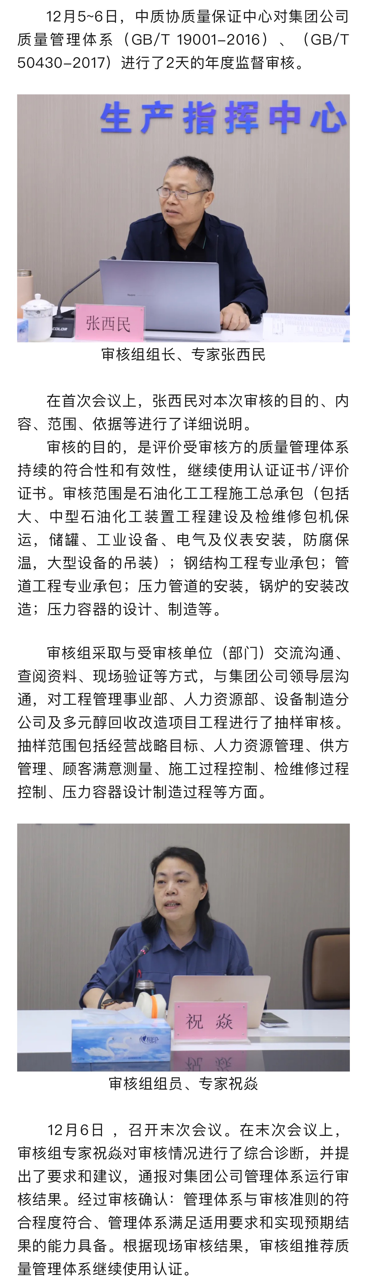 集團(tuán)公司通過(guò)質(zhì)量管理體系年度監(jiān)督審核