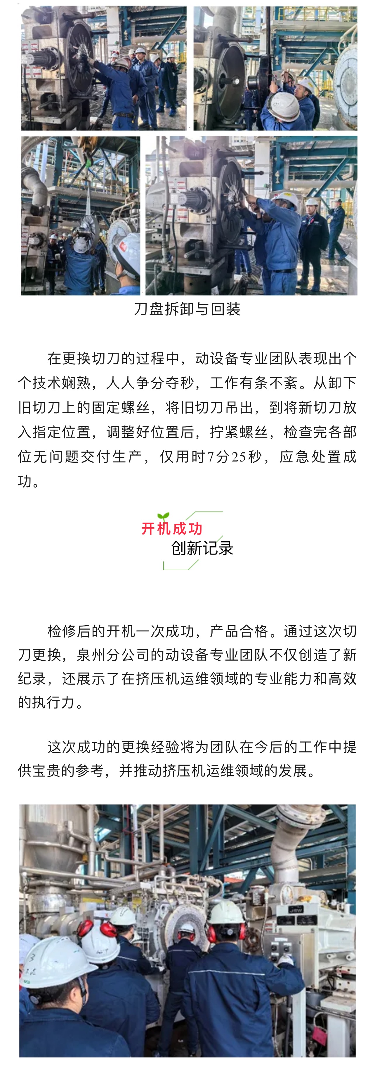 超棒!泉州動設(shè)備團(tuán)隊 | 7分25秒成功在線更換擠壓機(jī)切刀