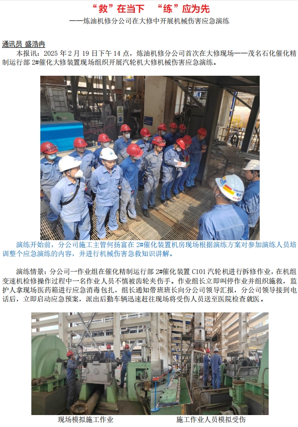 煉油機修分公司在大修中開展機械傷害應(yīng)急演練