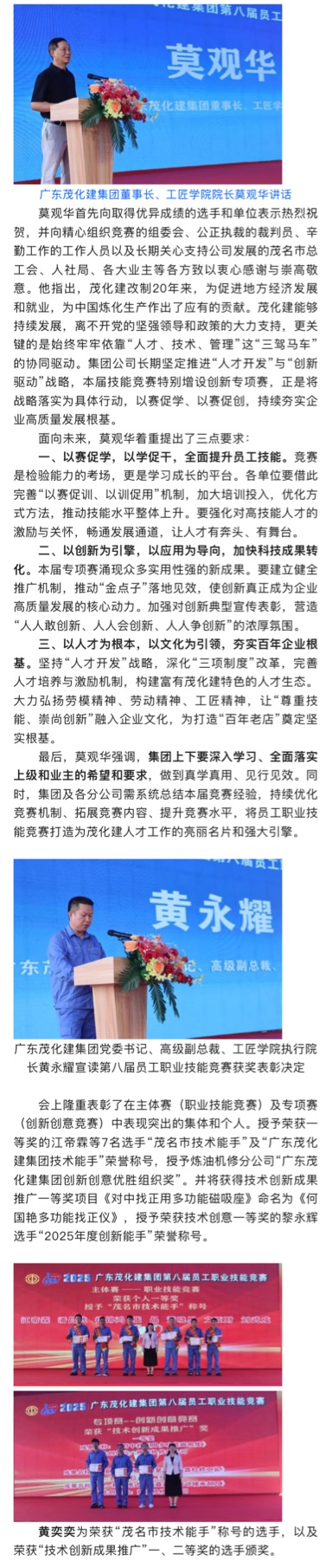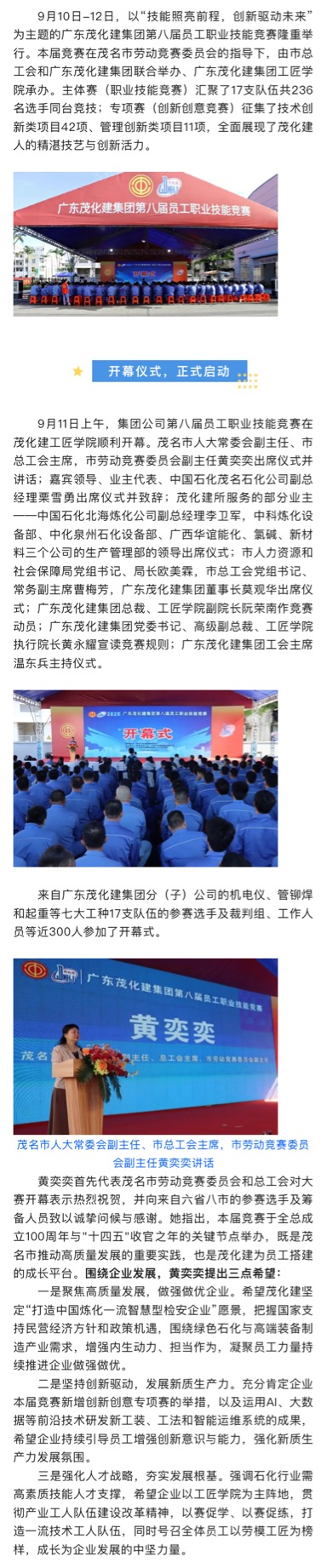 技能照亮前程,創(chuàng)新驅(qū)動未來!廣東茂化建集團(tuán)第八屆員工職業(yè)技能競賽圓滿舉行